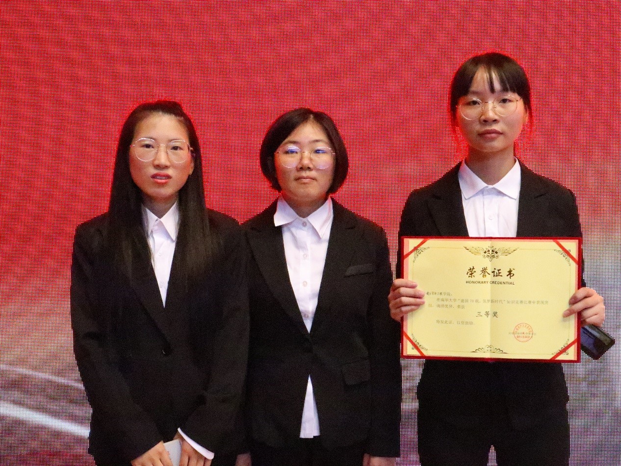 校初赛中,队伍以小组第一的优异成绩进入校决赛。13日上午,南华大学"辉煌七十载,筑梦新时代”线下知识竞赛校决赛于红湘校区南校大礼堂举行。我院线下竞赛参赛队伍经过激烈角逐,斩获三等奖,线上答题队伍——矿资161班和安工161班两支队伍拿下校二等奖。至此,我院在知识竞赛中线上线下俱获佳绩!