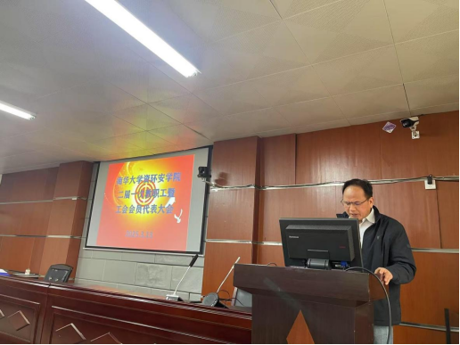 随后,学院党委副书记、分工会主席曾志伟作工会工作报告及会费使用情况报告,总结了工会在维护教职工权益、丰富教职工文化生活、促进校园和谐等方面的工作成效,并提出了新一年的工作计划。他表示,工会将继续发挥桥梁纽带作用,强化政治引领,筑牢发展根基,锚定高质量发展,进一步深化民主管理,不断提高服务教职工的能力和水平,增强工会活动的吸引力和参与度,进一步加强工会自身建设,切实为教职工办实事、解难题,增强教职工的归属感和幸福感。