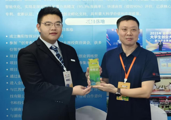 该项目聚焦人工智能在铀矿检测领域的创新应用,以首创性技术突破,为花岗岩型铀成矿潜力检测提供高效解决方案,兼具科研价值与实践意义。竞赛现场,团队凭借扎实的研究、清晰的成果展示,从众多作品中脱颖而出。
