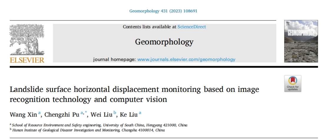 日前,金沙集团1862cc成色蒲成志副教授课题组硕士研究生辛旺在国际地貌学领域著名SCI期刊《Geomorphology》上以第一作者身份发表学术论文,报道了课题组在滑坡灾害监测预警方面的最新研究成果,提出了一种基于计算机视觉和图像识别技术的IR-CV滑坡监测方法,用于滑坡成灾前的变形位移监测。