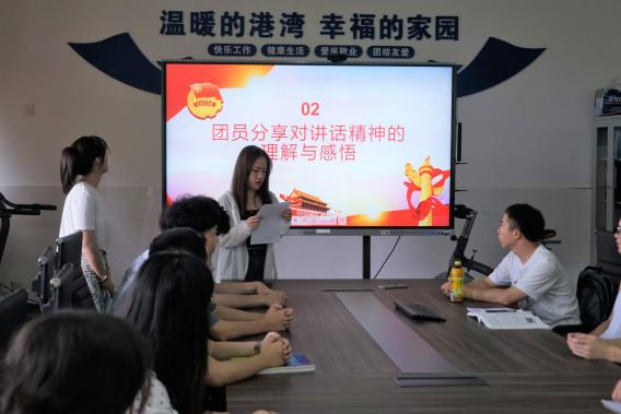 接下来,由团员分享对讲话精神的理解与感悟,周宁、周琼、蔡家浩、王建敏四位同学结合亲身体会,深切表达了对建党一百周年的崇高敬意和对习近平总书记讲话精神的独到见解与体悟。