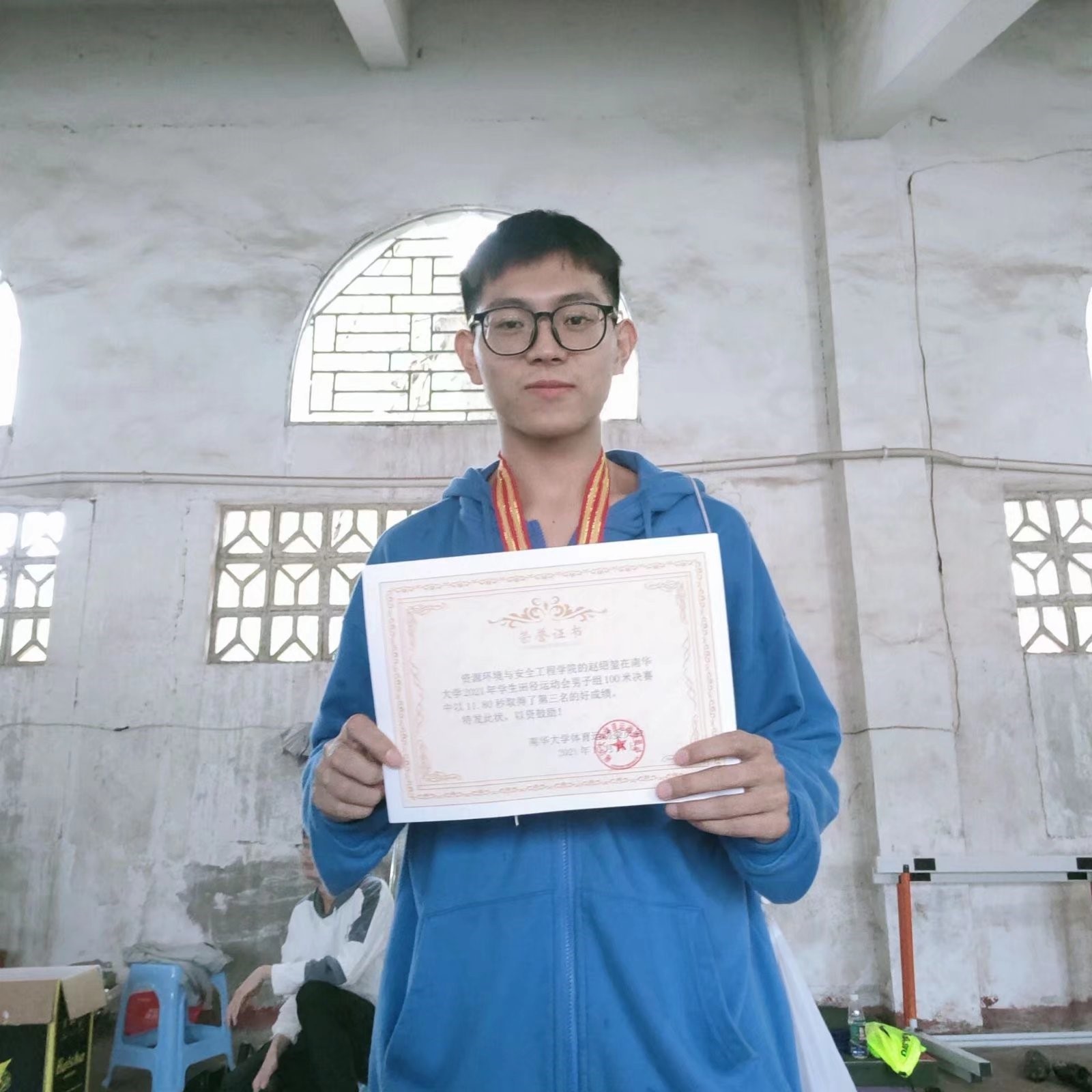 “今天天气也挺冷的,但感觉你状态也不错,赛前有做什么身体准备或者心理准备吗?”赵绍堃答道:“赛前我会提前四十分钟热身,先是慢跑十多分钟,然后再腿部拉神之类,等到全身活动开了之后再去比赛状态会好很多。但是心理准备方面有些忽略,没有做太多准备,今年100米实力都很强,比赛前心里面都是处于高度紧张的。”赛后结束当晚,赵绍堃也并无懈怠,正与队友配合准备即将到来的4×100接力,不停地训练,只为在明日赛场上证明自己,为集体争光。赛场上的辉煌成绩,离不开背后的努力训练,而有毅力的人,能从磐石中挤出水满。星光不负赶路人,希望他们在今后的比赛中取得更优异的成绩!