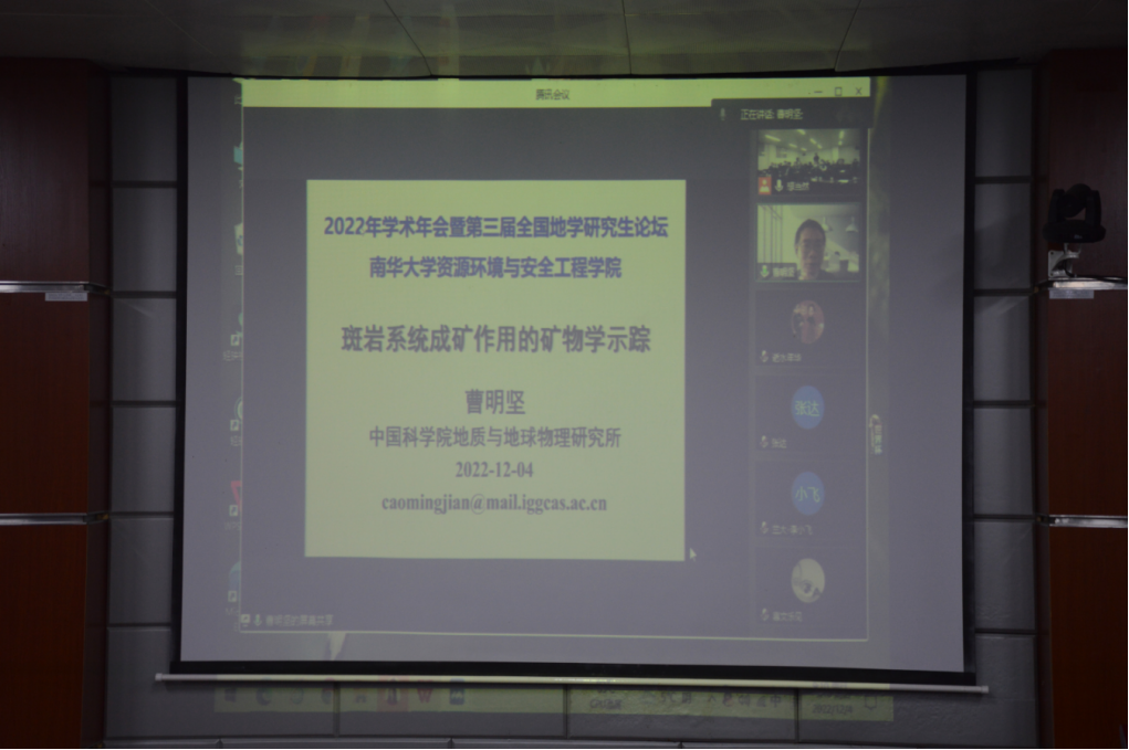 会场邀请了来自中国科学院地质与地球物理研究所的国家自然科学基金优秀青年基金获得者曹明坚研究员和来自中南大学的Lemdjou Yanick Brice博士,分别做了题为“斑岩系统成矿作用的矿物学示踪”和“Petrology, geochronology of the felsic and mafic rocks in the Adamawa-Yadé domain, Central African Fold Belt and their implications for tectonic evolution”的主题报告。17位地质资源与地质工程研究生分别围绕“华南岩石圈演化与成矿作用”、“矿产资源勘查与评价新理论、新方法”、“放射性环境修复”、“高放废物地质处置”、“火山作用与碳循环”等5个专题做了口头报告。