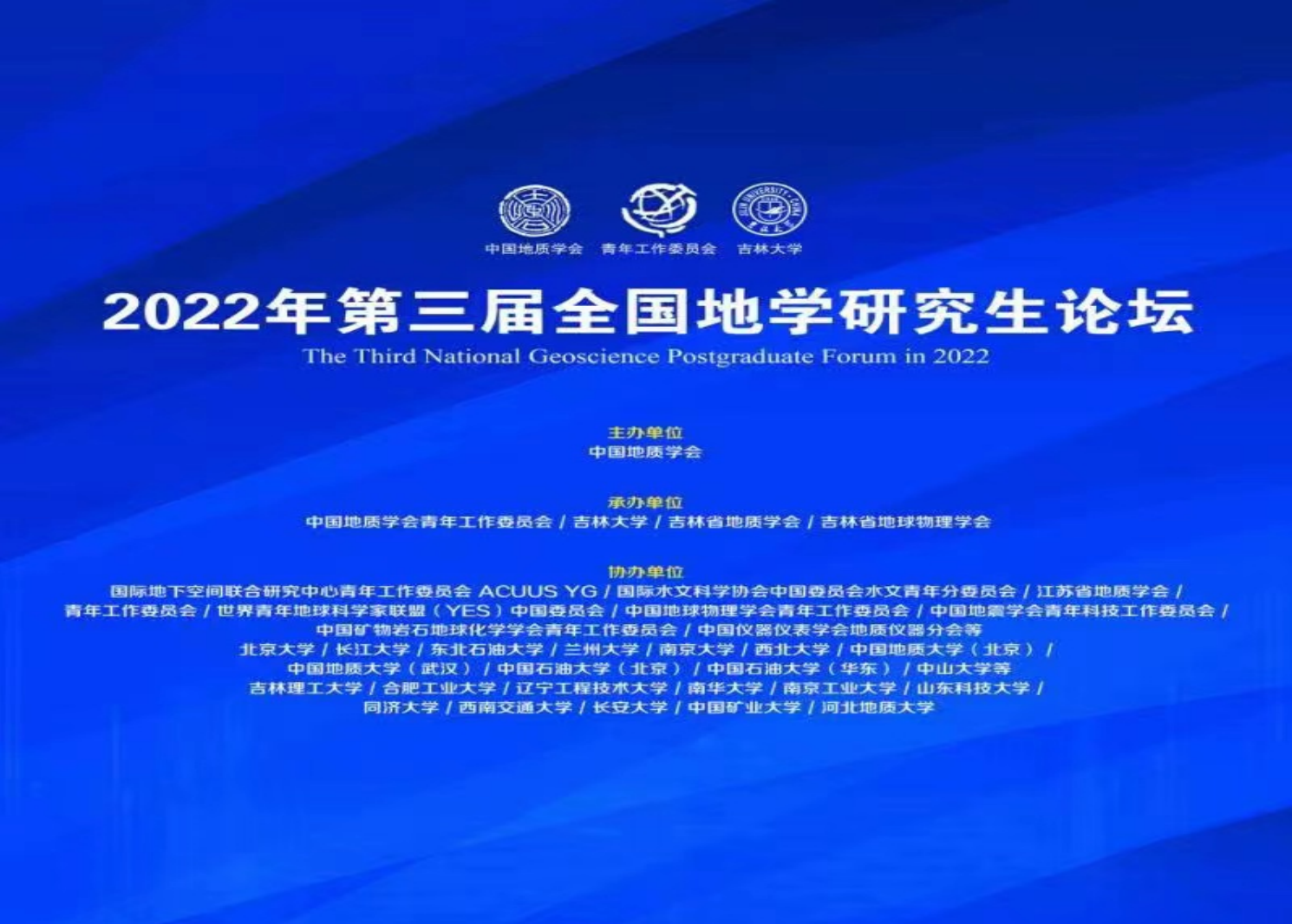 为庆祝中国地质学会建会100周年,由中国地质学会青年工作委员会和吉林大学承办的第三届全国地学研究生论坛于2022年12月2-4日在吉林长春顺利举办,共有来自全国90家高校、组织和科研院所的2201名地质青年参会。本次论坛以“学科交叉融合,地学创新发展”为主题,打造地学研究生学术交流的品牌和平台,促进青年人才培养。我校作为本次论坛的分会场和协办单位。
